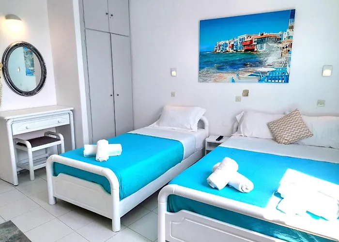 El hotel Seatincenter Rooms Mykonos Town tiene 6 habitaciones y está a tan solo 6 minutos a pie del Rarity Gallery. Los huéspedes que se alojen en esta pensión pueden aparcar su coche cerca.